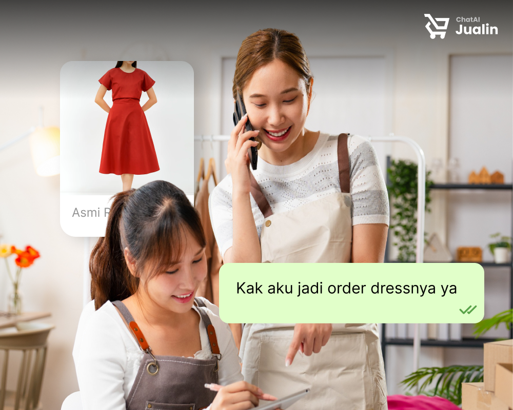 Jualin membantu menjelaskan detail produk, varian, harga, dan ketersediaan. Pelanggan dapat memesan langsung melalui chat atau POS lite tanpa proses yang berbelit.