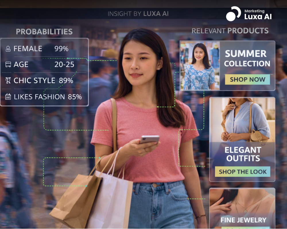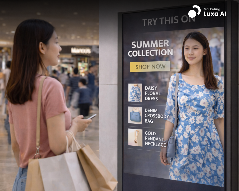 Luxa AI adalah layar digital cerdas yang menampilkan konten secara dinamis berdasarkan siapa yang ada di depannya. Saat seseorang masuk ke toko atau melewati area tertentu, Luxa AI dapat menyesuaikan tampilan visual secara real-time — menampilkan visual yang terasa personal dengan produk dari brand tersebut.
